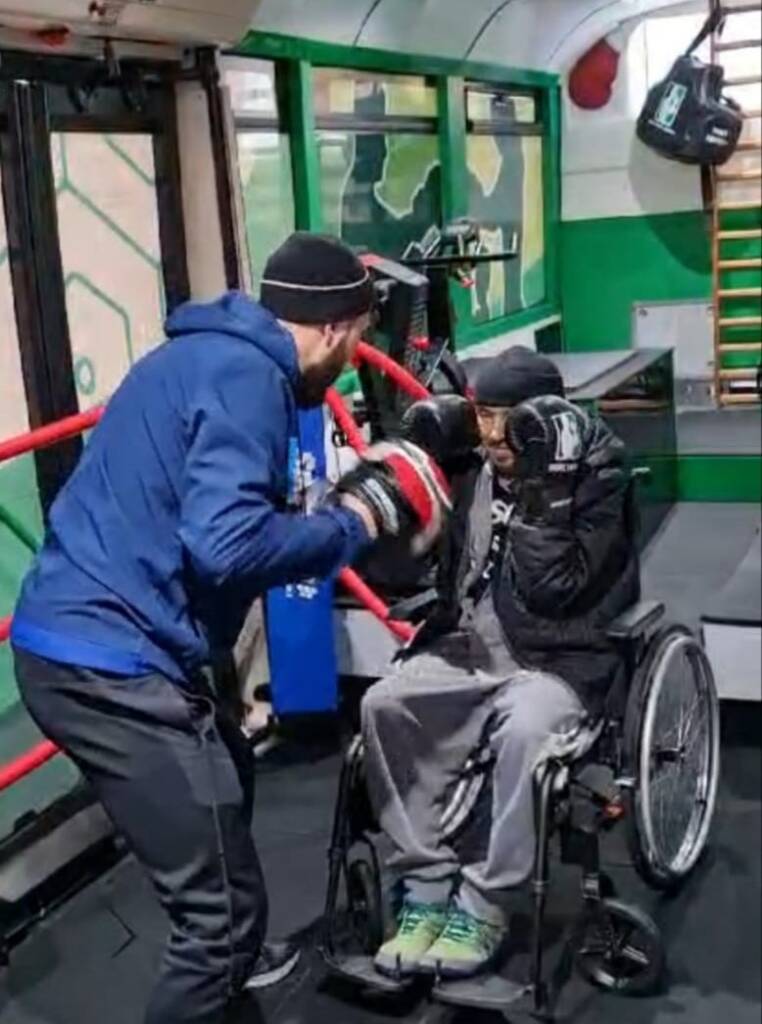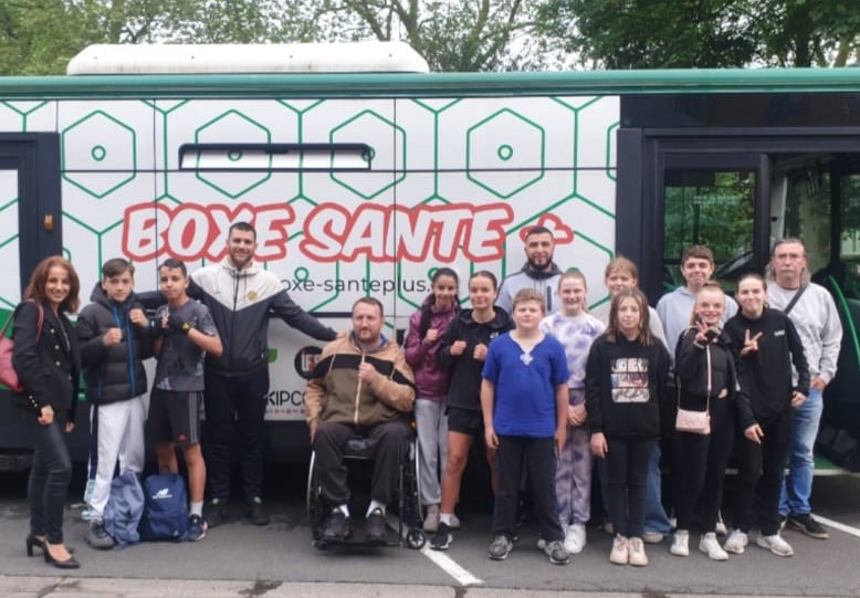 Boxe Santé +, c’est la première salle de boxe mobile d’environ 30 m². Équipée d’un ring, de sacs de frappe, de deux vélos, d’un espalier et de tout le matériel nécessaire, afin de proposer des séances adaptées à tous : enfants, adultes, seniors, valides ou en situation de handicap.